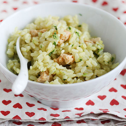 Once cooked, turn off the heat. Let the air out of the valve, open the pot and stir the rice with olive oil and parmesan cheese.