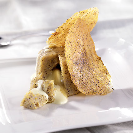 Bring the salted water to the boil in the open pressure cooker, with a drizzle of olive oil. Mix the two flours and sprinkle them into the water while whisking. Close the cooker and cook for 15 minutes after the hiss. When cooking time is up, open and stir well. Half-fill four small moulds slightly greased with oil, add one little 15gr ball of grated or finely chopped fontina in the middle. Cover with more polenta and let stand. Melt the remaining fontina cut into small pieces in a double boiler with the milk until obtaining a creamy fondue. Serve the small polenta timbale with the fondue.