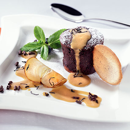 Chocolate and Pear Dessert with Tea and Rum Sauce