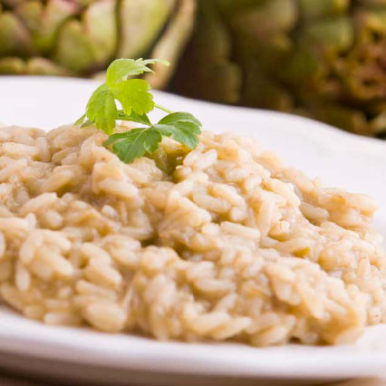 2 Pulite i carciofi levando le foglie esterne e le punte, tagliateli in quattro parti e tuffateli nell’acqua e limone.