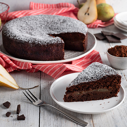 Con delicatezza copri le pere con l’impasto rimanente, livellandolo bene in superficie. Cuocilo in forno statico preriscaldato a 180° per 50 minuti. Una volta cotta,*** lascia riposare la torta per almeno 10 minuti nello stampo, quindi sformala e servila con una spolverizzata di zucchero a velo. La tua torta di pere e cioccolato è pronta!