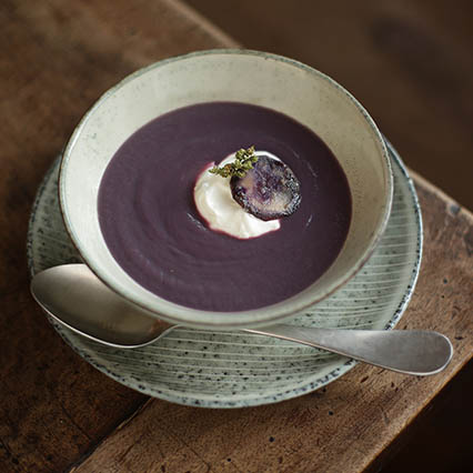 Servite la vellutata ben calda con un cucchiaio di panna acida per ciascuna porzione.