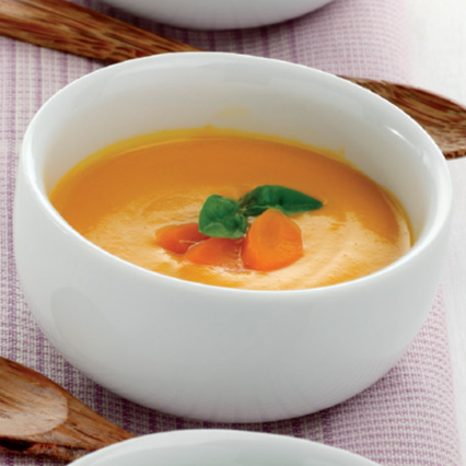 1 Pela le carote e tagliale a tocchetti. Fai soffriggere nella pentola lo spicchio d’aglio in 2 cucchiai di olio, unisci le carote, salale, poi versa l’Ecodose di acqua.