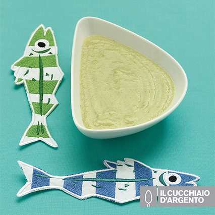 Sbucciate la patata e la cipollina e riducetele a tocchetti, spuntate i fagiolini e tagliateli a pezzetti. Lavate bene le verdure e il basilico, disponetele nella pentola e coprite con 1 ecodose e 50 ml d’acqua, senza aggiungere sale né dado. Chiudete il coperchio e mettete la pentola su un fuoco di media dimensione a fiamma alta. Dal sibilo dimezzate la potenza della fonte di calore e cuocete per 5 minuti. Togliete dal fuoco, lasciate sfiatare, aprite il coperchio e recuperate le verdure lasciando il brodo. Inserite nella pentola la griglia con la platessa, chiudete il coperchio, rimettete sul fuoco e, dal sibilo, cuocete per 2 minuti. Spegnete, lasciate sfiatare, aprite il coperchio, recuperate la platessa, eliminate la pelle e frullatela nel mixer con le verdure. In 200-220 grammi di liquido di cottura filtrato e caldo stemperate la crema di multicereali e il frullato di pesce e verdure. Trasferite in un piatto, condite con olio e servite.