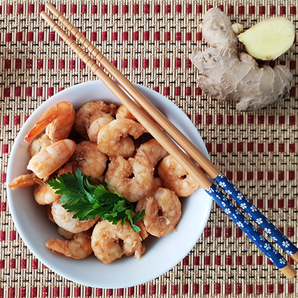 - Scaldate un filo d’olio nella Wok Tempra e fate cuocere i gamberi per circa 5 minuti. Aggiungete la salsa di soia, lo zucchero e lo zenzero grattugiato. Proseguite la cottura a fuoco vivace fino a quando il condimento non si sarà rappreso.