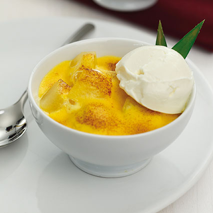 3 Versa lo zabaione sulle mele, poi gratina in forno per 3 minuti. Servi con una pallina di gelato alla crema (facoltativa).