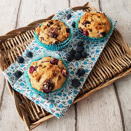 - Unite i mirtilli e le gocce di cioccolato, che avrete passato nella farina, in modo che non scenderanno sul fondo dei muffin durante la cottura.
