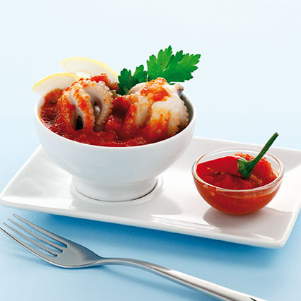 1 Lava i polipetti e puliscili all’interno. Mettili a marinare con 3 cucchiai d’olio, l’aglio e il prezzemolo, il peperoncino tritato e un po’ di sale. Lascia riposare per 30 minuti.