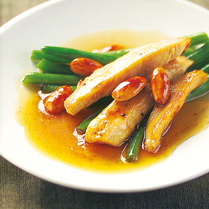 - Versare il brodo e aggiungere le mandorle nella pentola a pressione. Staccare il fondo di cottura delicatamente e aggiungere i fagiolini. chiudere e cuocere a fuoco minimo.