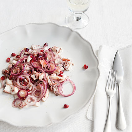 piatti. Completa con le cipolle, aggiungi i chicchi della melagrana, sala e pepa
