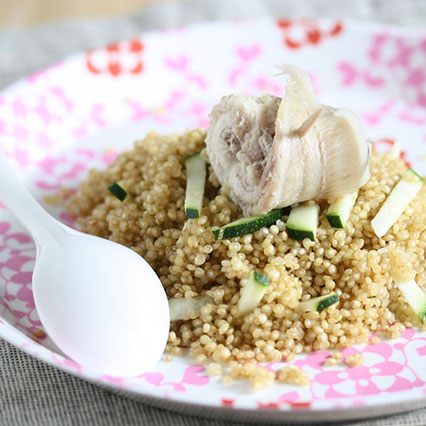 Fate uscire il vapore rapidamente passando ancora la pentola a pressione sotto l’acqua corrente, per non fare attaccarsi la quinoa, e servite disponendo i filetti arrotolati sulla quinoa.