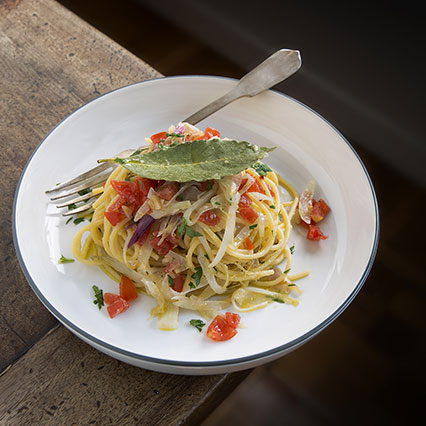 - Cuocete gli spaghetti in abbondante acqua salata, scolateli al dente e uniteli al condimento. Insaporite la pasta a fuoco vivace per un minuto, unite i filetti di pomodoro e il prezzemolo, poi il parmigiano e amalgamate bene il tutto.