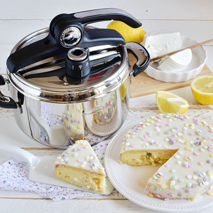 5. Trascorso il tempo sfiatate il vapore e lasciate riposare a coperchio chiuso per 10 minuti: in questo modo la torta avrà il tempo di rassodarsi e la superficie sarà più uniforme. Estraete lo Scodello e rimuovete la torta una volta fredda.