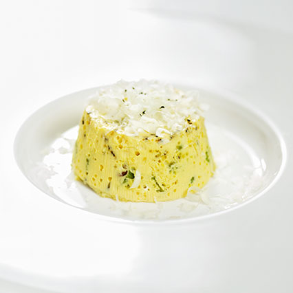 -nel frattempo oliate gli stampini usa e getta e foderateli con gli asparagi tagliati sottilmente con una mandolina, versate l'uovo negli stampi e metteteli sul cuoci verdure.