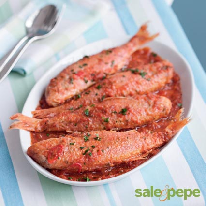3. Trasferisci le triglie fritte nella casseruola con il sugo e prosegui la cottura per 4-5 minuti, senza girare le triglie,ma scuotendo spesso la casseruola. Spolverizzale a piacere con un po’ di prezzemolo tritato.