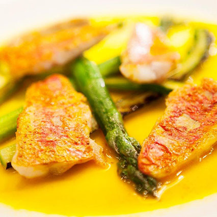 - Mettete le triglie e gli asparagi sul piatto di portata e bagnate con il fumetto ristretto.