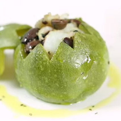 -riempite le zucchine con l'impasto ottenuto e chiudete con il coperchio. mettete le zucchine sul cestello , aggiungete un ecodose di acqua sul fondo e cuocete per 20 minuti dal momento del fischio. una volta tiepide servite con dei fiocchi di sale e un filo di olio extravergine.